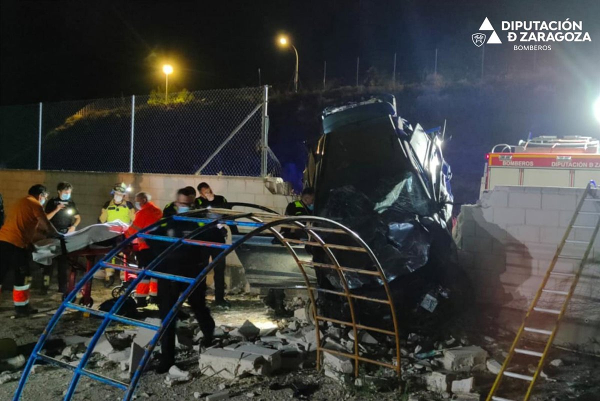 Dos personas han resultado heridas en un accidente de tráfico este domingo, 3 de octubre, en Calatayud cuando el vehículo en el que viajaban se ha salido de la vía y ha salido despedido 30 metros hasta empotrarse contra un muro en la zona de la ciudad deportiva.