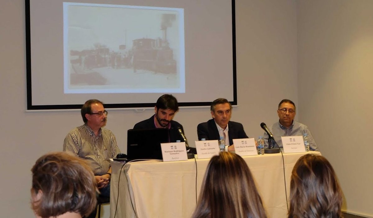 La publicación 'El ferrocarril de Tudela a Tarazona. El Tarazonica y los trenes de la Azucarera' ha sido presentada en Tudela en un acto organizado por el Ayuntamiento de la ciudad navarra y al que han asistido los alcaldes de Tarazona y Tudela, Luis María Beamonte y Eneko Larrarte, y dos de los autores, Mariano Rodríguez y Lluís Prieto.