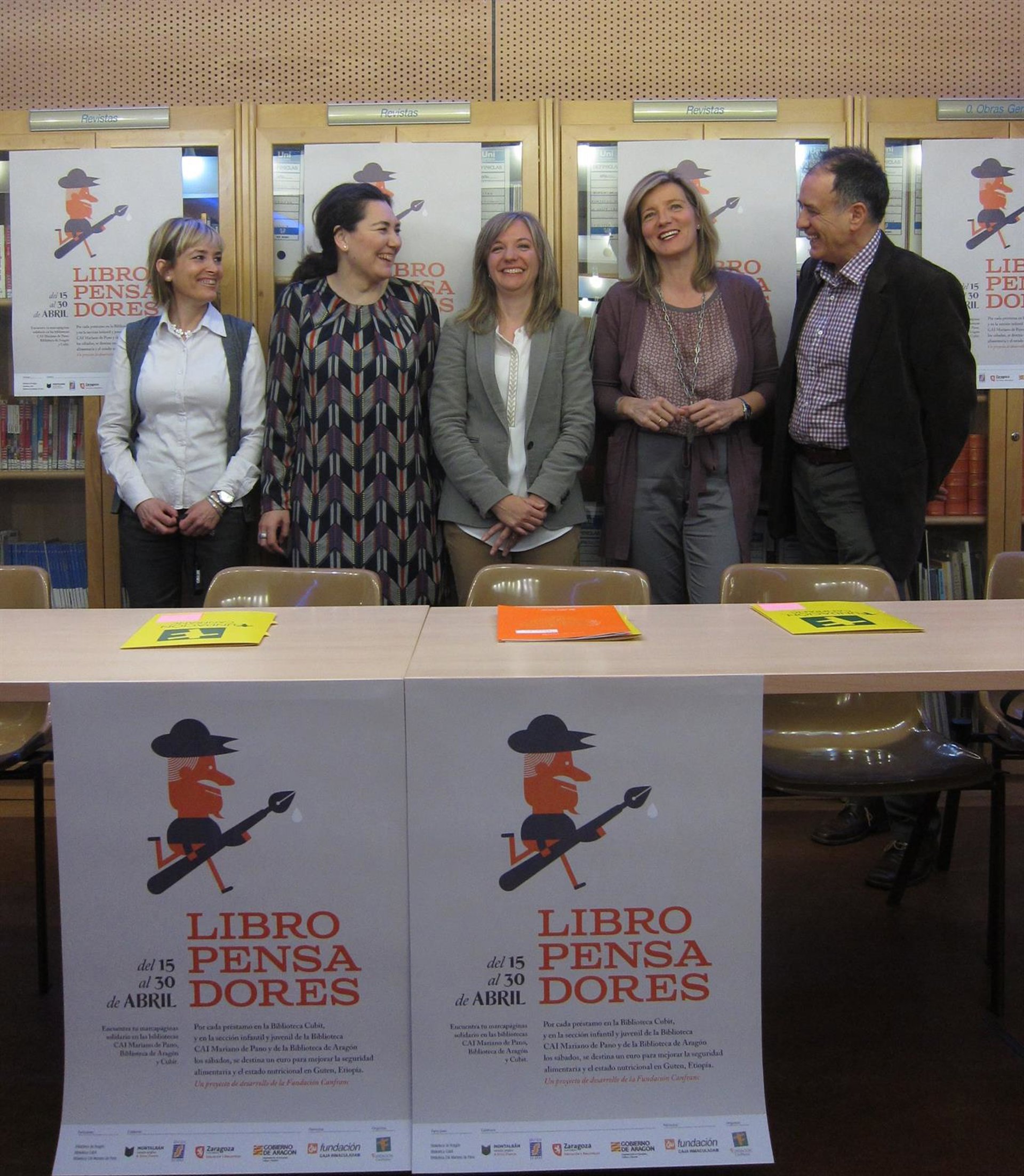 La directora de la Obra Social de Fundación CAI, María González, la responsable de Cooperación de la Fundación Canfranc, Irene Domínguez, y los directores de las bibliotecas Cubit, CAI Mariano de Pano y de Aragón, Cruz Acín, Eva Jiménez y Alberto Lafarga, respectivamente, han presentado en rueda de prensa esta campaña que en su anterior edición logró recaudar 4.451 euros para luchar contra la pobreza en Guatemala.