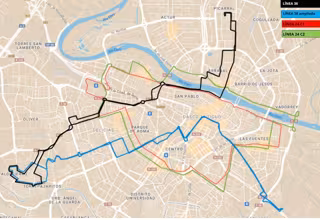 Plano con el desdoblamiento de la línea 24 y la prolongación de la 38 hasta Valdefierro - AYUNTAMIENTO DE ZARAGOZA