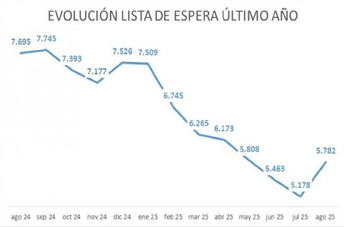 Si se tiene en cuenta el cómputo de todo el verano, la tendencia sigue siendo a la baja. Esto es así porque si la lista de espera quirúrgica de más de 180 días está en agosto en 5.782 pacientes, esta cifra es inferior a la de mayo de 2025, cuando estaba en 5.808 pacientes (-26 pacientes). En el periodo de verano, de junio a agosto de 2025, se ha conseguido estabilizar las cifras e incluso bajarlas.