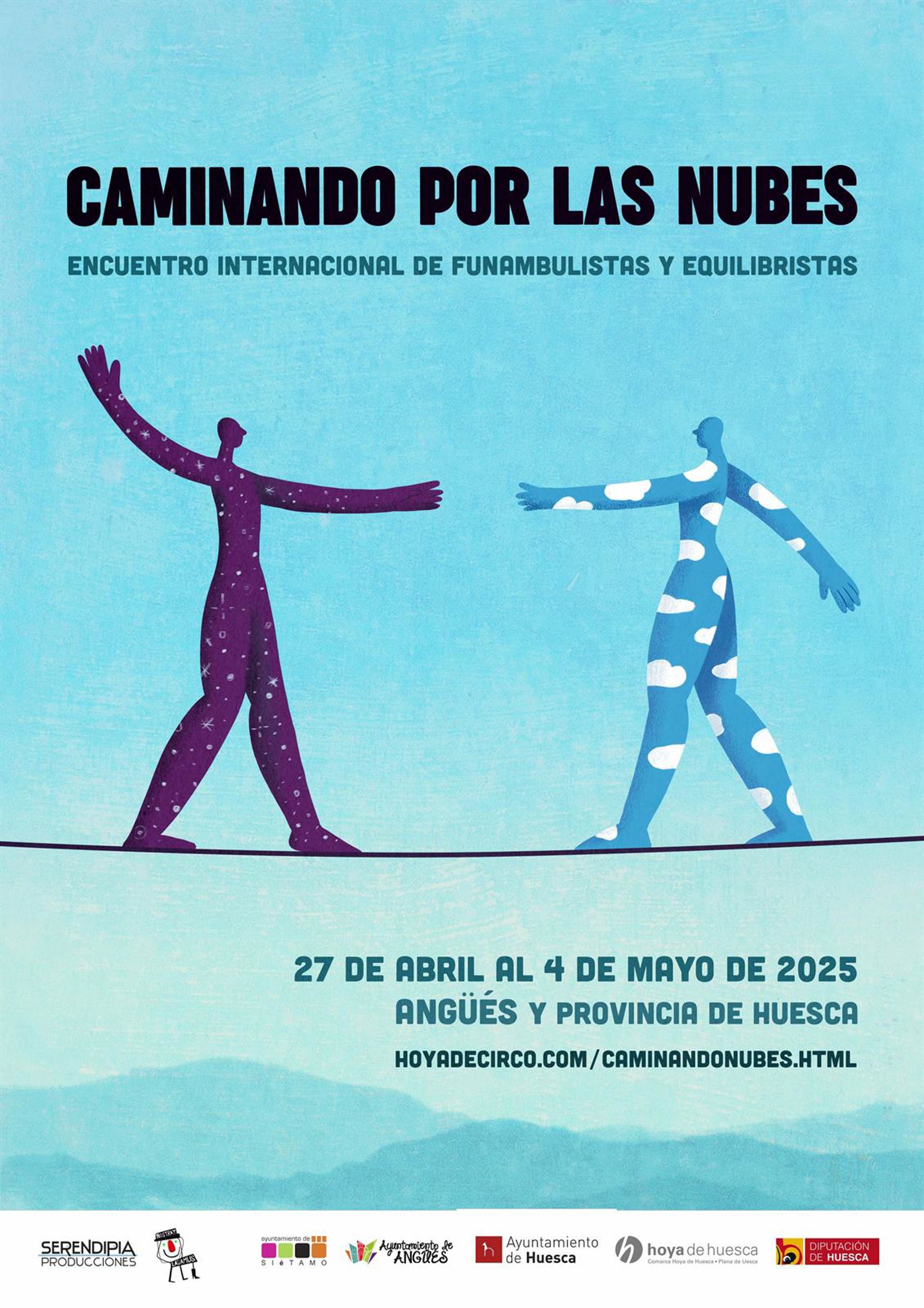 Caminando por las nubes es un encuentro internacional de funambulistas y equilibristas en la provincia de Huesca, en particular, en la Comarca de la Hoya de Huesca. Unos días para compartir, aprender y crear lazos. Unos días en los que la formación y la convivencia tejen redes entre el territorio y los propios artistas.