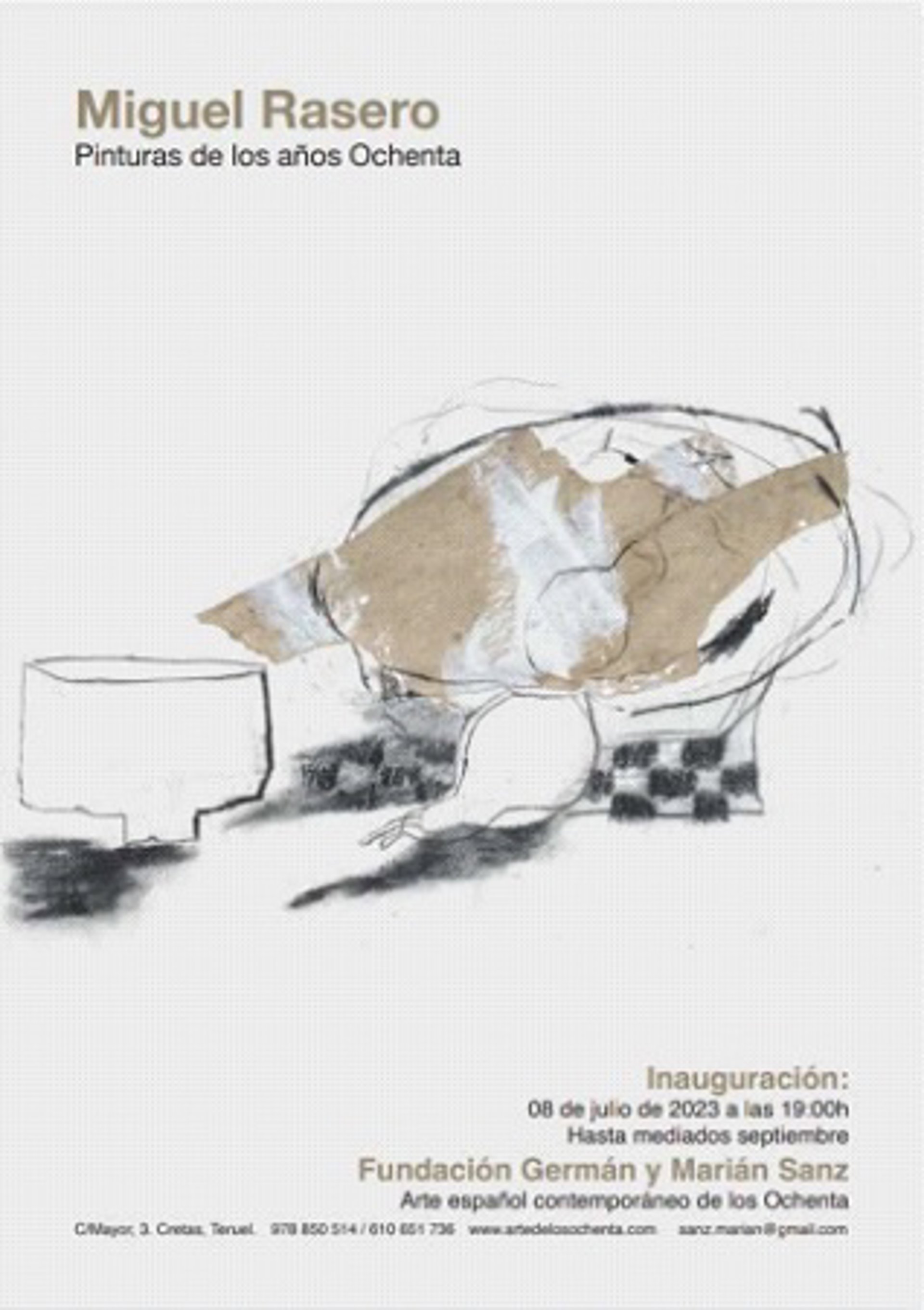 La Fundación Germán López y Marián Sanz, ubicada en la localidad turolende de Cretas, en Teruel, acoge este verano la exposición 'Miguel Rasero. Pinturas de los años Ochenta'. La inauguración será este sábado, 8 de julio, a las 19.00 horas en la calle Mayor de la Villa. La muestra se podrá visitar hasta mediados de septiembre.