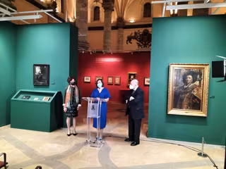 La exposición reúne obras que han sido cedidas por diversos museos españoles, entre los que se encuentra El Prado, con obras como 'Cortejo del bautizo del príncipe don Juan', que destaca por su gran tamaño y del que el comisario de la muestra, Wilfredo Rincón, ha resaltado la oportunidad de verlo que ofrece esta muestra, ya que la pinacoteca madrileña no lo tiene expuesto.