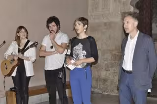 Lo han presentado este lunes la presidenta de las Cortes de Aragón, Violeta Barba, y el director del Servicio Gestor de La Aljafería, Fernando Sanmartín, acompañados por Puente, cantante del grupo Tachenko, y la cantautora María José Hernández, quien ha interpretado un tema a la guitarra.