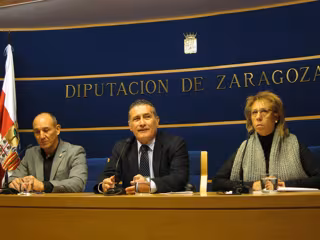 El diputado delegado de Bienestar Social de la Diputación Provincial de Zaragoza (DPZ), Máximo Ariza, el presidente de la Comarca de Valdejalón, José María Abad, y la vicepresidenta de la institución comarcal y alcaldesa de Lumpiaque, Mercedes Sediles, han presentado en rueda de prensa este evento que se desarrollará en el Pabellón Municipal, en horario de 11.00 a 14.00 y de 17.00 a 20.00 horas.
