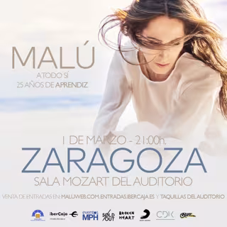 Las entradas para el concierto de Zaragoza y el resto de ciudades ya están disponibles en 'www.maluweb.com', 'entradas.ibercaja.com' y en las taquillas del Auditorio.