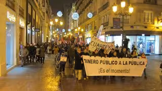 Cientos de personas se han manifestado por el centro de Zaragoza tras la pancarta 'Dinero público a la pública. ¡Es el momento!' para reclamar al Gobierno de Aragón que no renueve a partir del próximo curso los conciertos educativos donde la demanda pueda ser asumida por la escuela pública.