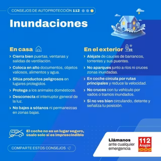 Gráfico con las recomendaciones a los ciudadanos en caso de inundaciones. - 112 ARAGÓN
