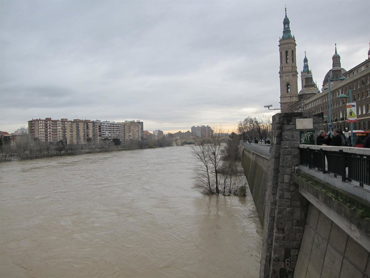 En la actualidad, el Ebro a su paso por la capital aragonesa alcanza una altura de 4,34 metros y lleva un caudal de 1.530 metros cúbicos por segundo, que llegaría a los 2.000 metros cúbicos en la tarde de este lunes cuando se espera el pico de la avenida.