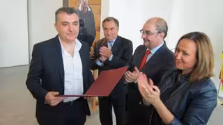 El acto de entrega del premio ha contado con la asistencia del presidente del Gobierno de Aragón, Javier Lambán, la consejera de Cultura, Mayte Pérez, y el presidente de Enate, Luis Nozaleda, patrocinador del galardón, gracias al que ha recuperado su dotación económica.