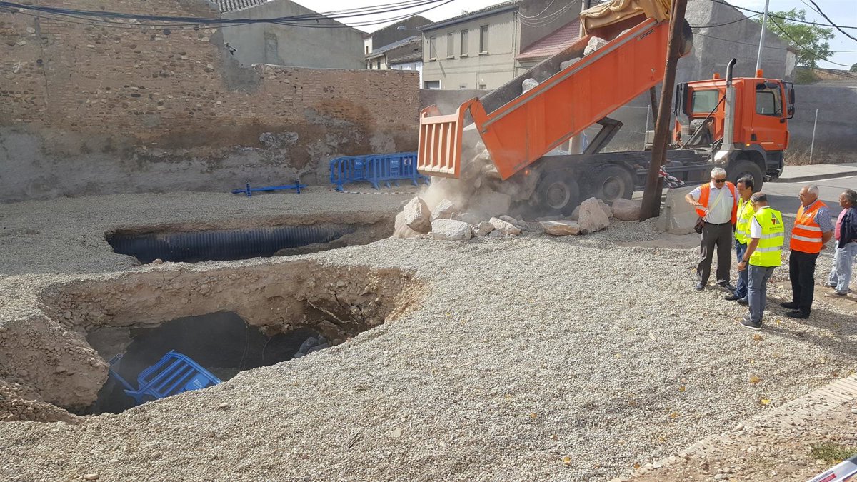 La Diputación Provincial de Zaragoza (DPZ) ha iniciado los trabajos para rellenar de escollera la sima reabierta por cuarta vez desde 2007 en el municipio de Alcalá de Ebro. Los operarios de Recursos Agrarios y de Vías y Obras trabajan desde este lunes para cerrarla.