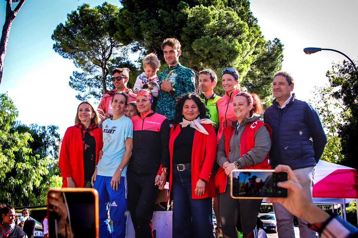 Foto de familia en el podio de la II Carrera Solidaria de Cruz Roja celebrada este domingo en el Parque Grande José Antonio Labordeta. - CRUZ ROJA