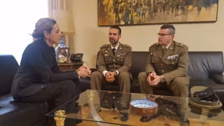 El teniente coronel-jefe del núcleo de constitución de la USAC (Unidad de Servicios) del Acuartelamiento "Sancho Ramírez" de Huesca, Amancio Gómez Gauchia, acompañado del subteniente destinado en comisión de servicios a la citada unidad, Francisco Mata Vallespin, ha realizado una visita oficial a la subdelegada del Gobierno de España en Huesca, María Teresa Lacruz, en una primera toma de contacto tras la llegada, el pasado día 2 de enero, de los primeros 30 militares que preparan el cuartel para su reapertura.