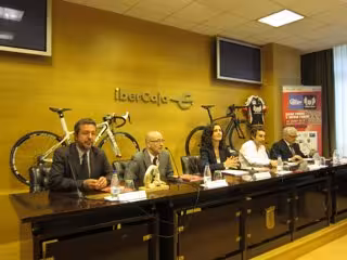 La responsable de Imagen y Campañas de Ibercaja, Belén Bardají, el director general de Deportes del Gobierno de Aragón, Félix Brocate, el presidente de la peña ciclista Edelweiss, Fernando Escartín, el presidente de Octagon Esedos, Xavier Bartrolí, y el alcalde de Sabiñánigo, Jesús Lasierra, han presentado este martes en rueda de prensa en Zaragoza la Quebrantahuesos 2013, que desarrollará sus actividades en la zona del Bulevar del municipio, donde encontrará su salida y llegada y se instalará una zona comercial con 50 stands.