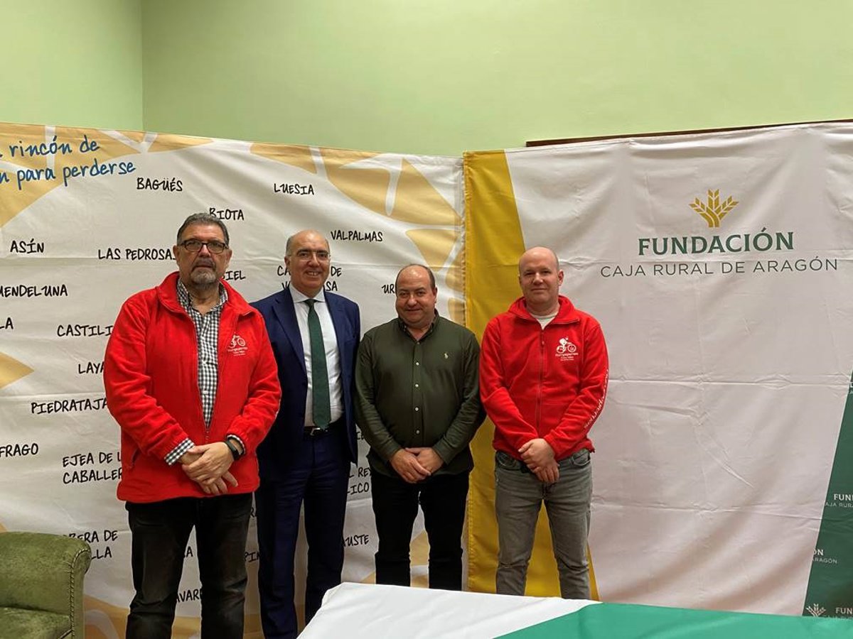 José Antonio Artigas, de la Fundación Caja Rural de Aragón, Santos Navarro, presidente de la Comarca de las Cinco Villas, Felipe Díaz, organizador de la Rompepiernas y Víctor Carbó, director técnico de la Rompepiernas. - FUNDACIÓN CAJA RURAL DE ARAGÓN