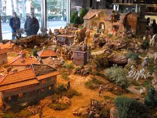 Más de 200 figuras componen el tradicional belén que Ibercaja instala todos los años en su oficina central en la plaza Basilio Paraíso de Zaragoza. Con la instalación del nacimiento este lunes, 5 de diciembre, la entidad inaugura el periodo navideño.