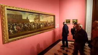Entre los cuadros expuestos destacan las seis escenas pintadas por Goya dentro de la serie 'Juegos de niños' o tres lienzos sobre temas religiosos de Luca Giordano. No obstante, quienes se acerquen al Palacio de Sástago pueden disfrutar de casi un centenar de pinturas de las escuelas española, flamenca, italiana, holandesa y francesa que abarcan desde el Barroco hasta la pintura romántica con autores como Antonio y José de Brugada, Jenaro Pérez Villamil, Bartolomé y Vicente Carducho, Francisco Collantes, Frans Snyders o Paul de Vos.