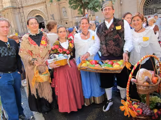 Alrededor de 2.500 personas integradas en 45 grupos de casas regionales de toda España han participado en la Ofrenda de Frutos a la Virgen del Pilar, a quien han ofrecido unos 3.500 kilos de alimentos.