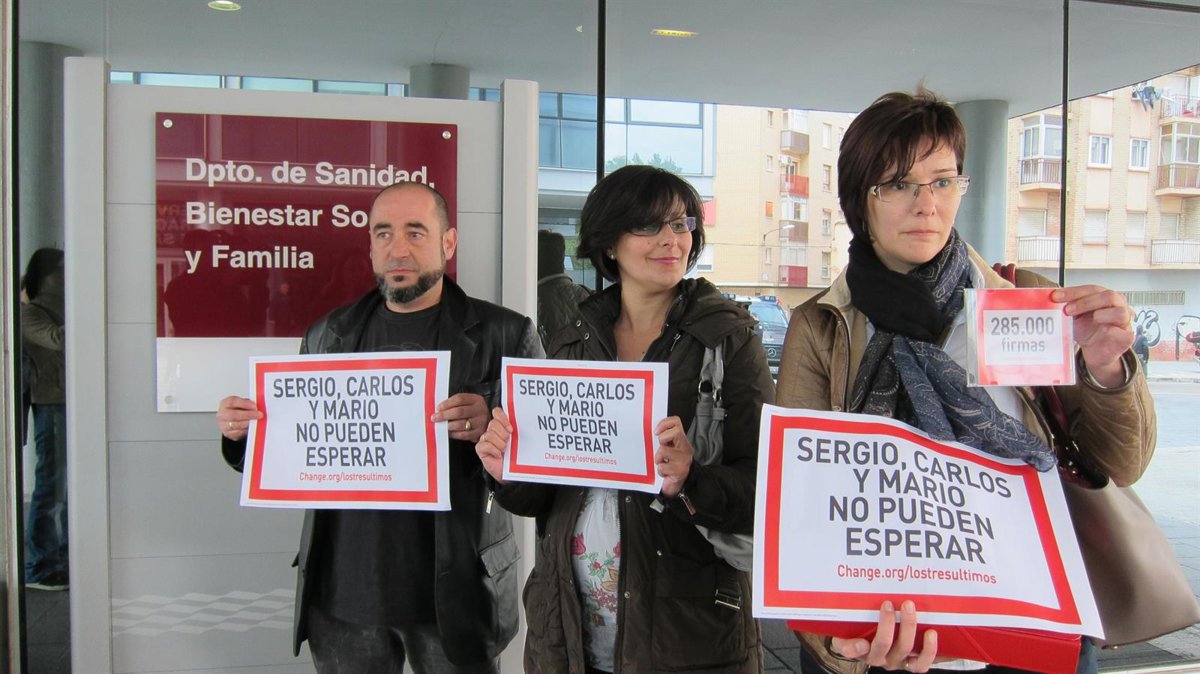 Aurelio Sanz y Carmen Baltasar, padres del niño de 9 años, e Irene Peralta, de los mellizos, han entregado un CD al consejero de Sanidad de la Comunidad, Sebastián Celaya, con estas firmas, y se han reunido con él.