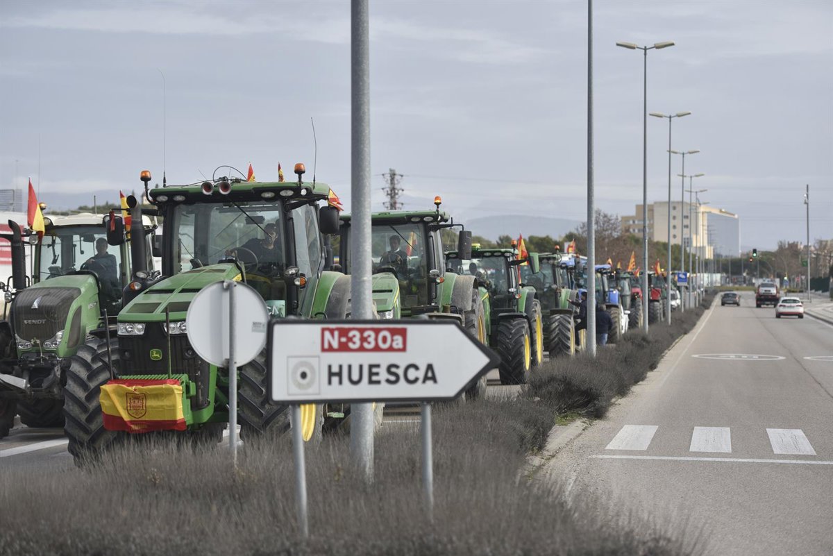 Decenas de tractores durante la tercera jornada de protestas de los ganaderos y agricultores para pedir mejoras en el sector, a 8 de febrero de 2024, en Huesca, Aragón (España). - Verónica Lacasa - Europa Press