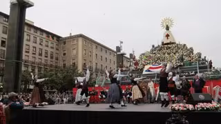 Más de 90 grupos han depositado ya sus ramos en la Ofrenda de Flores a la Virgen del Pilar, uno de los actos centrales de las fiestas patronales de la capital aragonesa. En total, está previsto que desfilen 704 grupos.