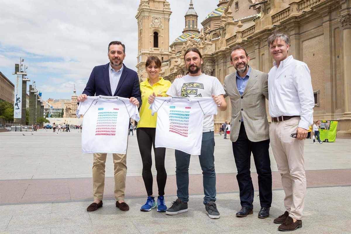La Sanitas Marca Running Series Zaragoza se ha presentado esta miércoles en el Ayuntamiento de Zaragoza por el concejal de Vivienda y Deporte, Pablo Híjar; el responsable asistencial de Sanitas en Aragón, Francisco José Mauleón; el representante de Unidad Editorial, Álvaro Cardemil; el director de Marketing de Automóviles Sánchez, Sergio Diloy; y la atleta Isabel Macías, embajadora de la carrera.