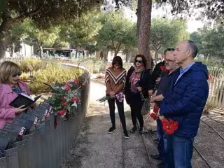 Los candidatos de Más País-CHA-Equo han colocado flores de homenaje en el memorial y en la tapia del cementerio donde se producían los fusilamientos y se leído un texto, a cargo de Josefina Musulén, escrito por testigos de lo que sucedió hace más de 80 años en ese mismo cementerio a alguna de las víctimas de la dictadura militar del régimen franquista.