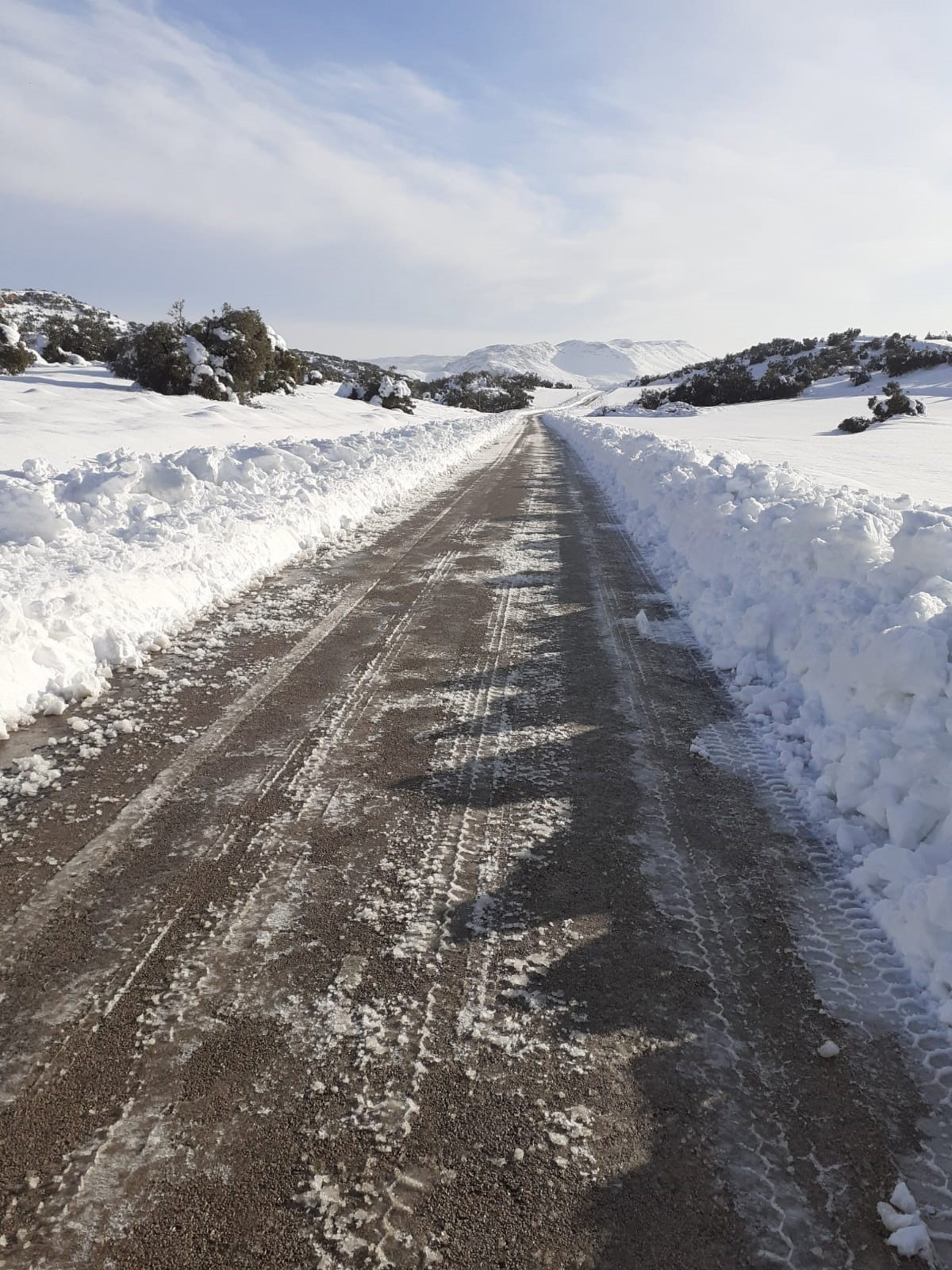 Vía de acceso a Utrillas tras el temporal de nieve 'Gloria'. - CEDIDA.