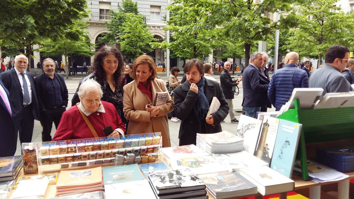 La consejera de Educación, Cultura y Deporte del Gobierno de Aragón, Mayte Pérez, ha recorrido este martes en el Paseo de la Independencia de Zaragoza los estands de libreros y editoriales, más de un centenar. La consejera se ha felicitado en este Día del Libro por el buen momento de los autores de la Comunidad y de la "edad dorada" que viven las letras aragonesas.