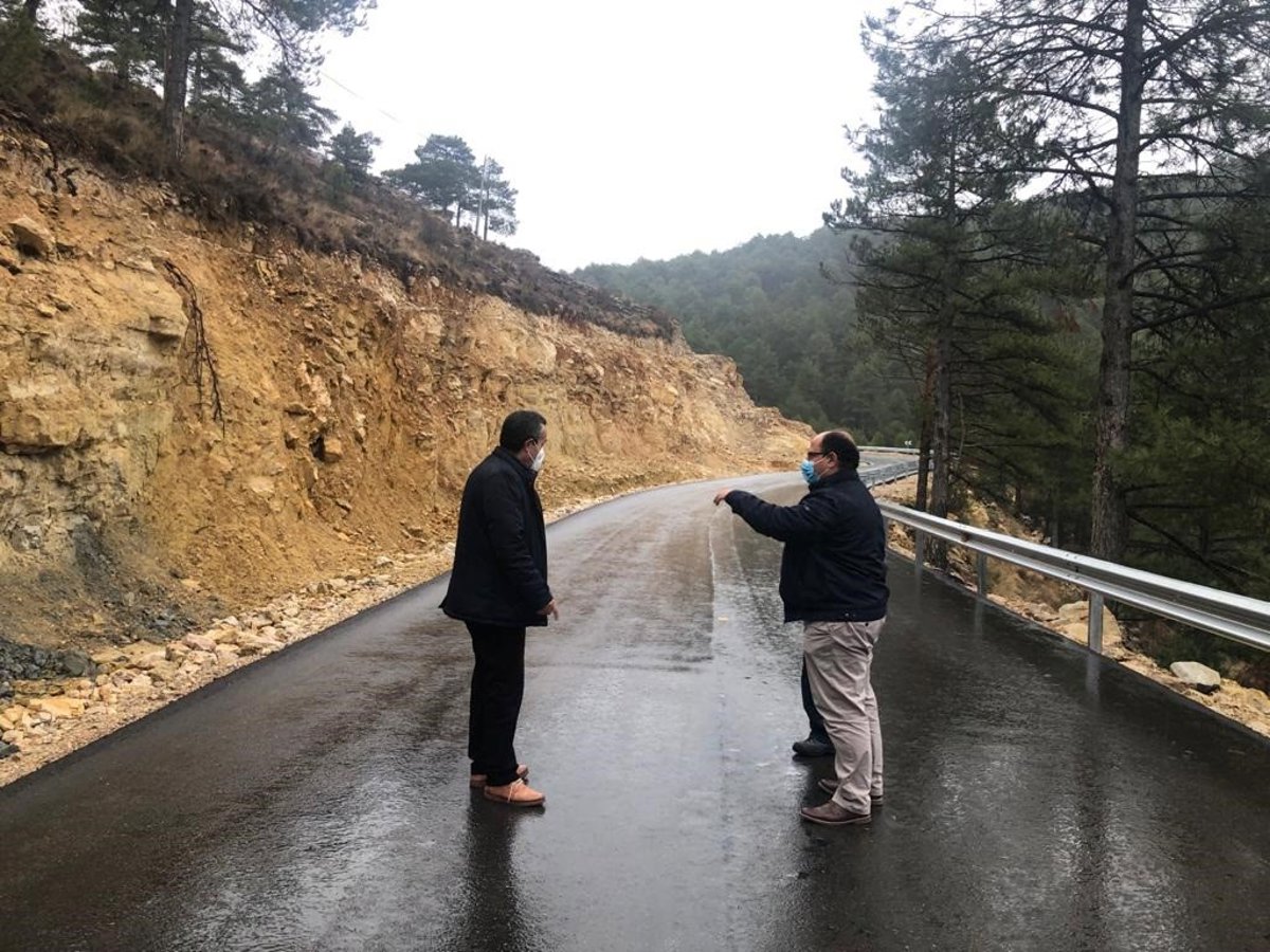 El vicepresidente Alberto Izquierdo, con el alcalde de El Vallecillo, Pascual Giménez, visitando la carretera - DIPUTACIÓN DE TERUEL