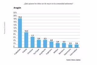 En Aragón, el 19,2 por ciento de los chicos quieren ser futbolistas, el 10,3% policías, el 7,7% profesores y el 5,9 por ciento youtuber. Ingenieros, médicos, bomberos, veterinarios o informáticos completan el top 10.
