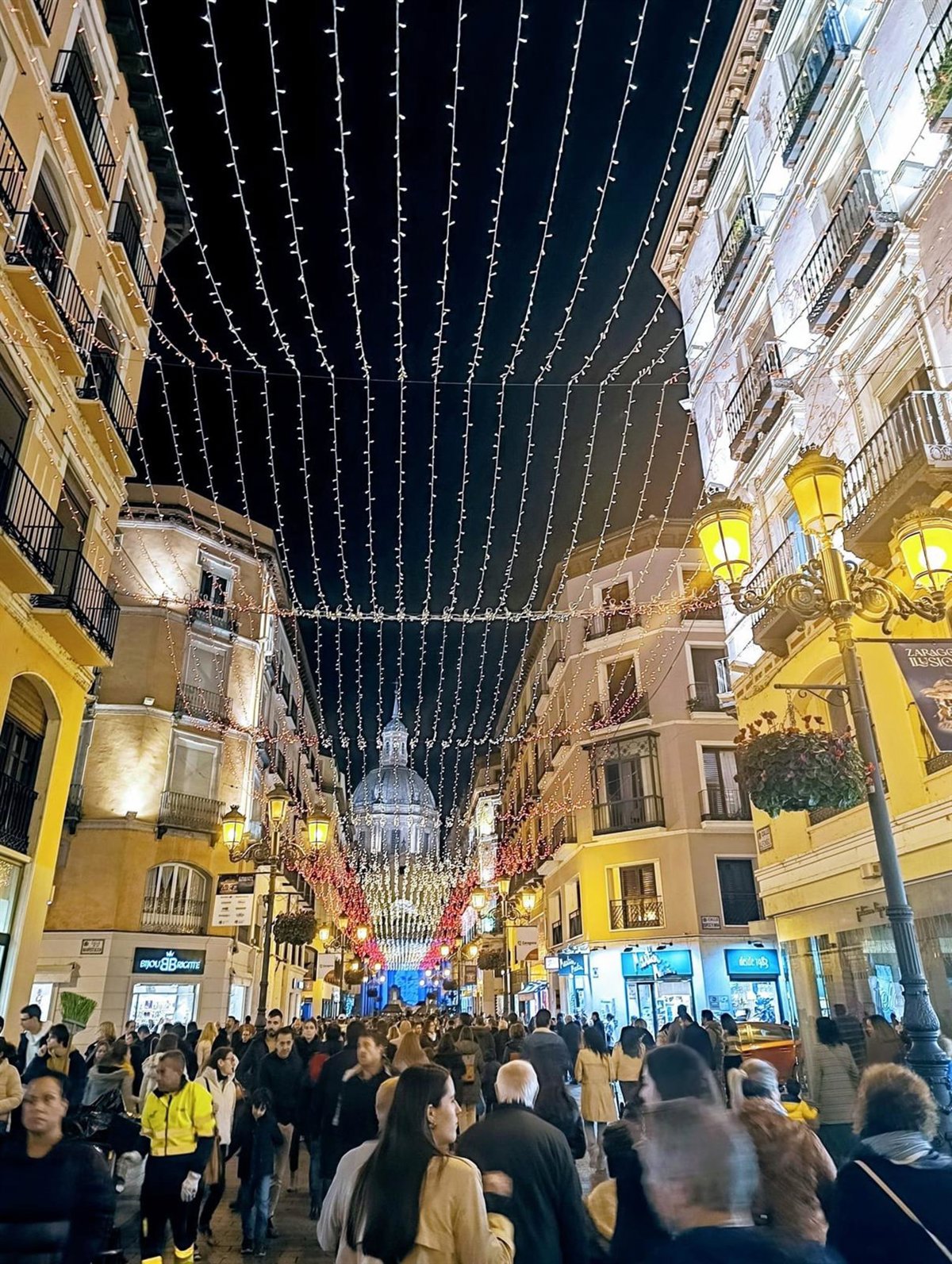 La calle Alfonso de Zaragoza decorada con su iluminación navideña y llena de gente. - EUROPA PRESS