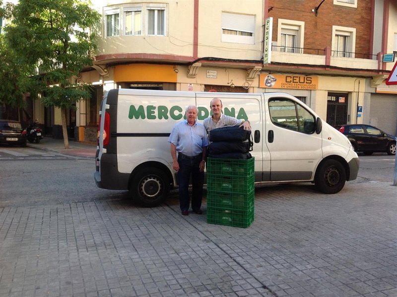 Alberto y Daniel, repartidores de Mercadona son los encargados de llevar los productos desde la tienda al comedor social. De esta forma facilitan el trabajo a los voluntarios que pueden preparar los alimentos, sin necesidad de tener que desplazarse para recogerlos.