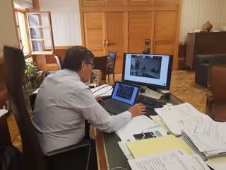 El vicepresidente y consejero de Industria del Gobierno de Aragón, Arturo Aliaga, participa por videoconferencia en la Mesa de la Automoción. - GOBIERNO DE ARAGÓN