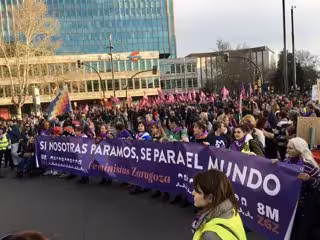 En esta ocasión, la movilización en Zaragoza mantiene el lema de otros años, 'Si nosotras paramos se para el mundo' porque, según ha lamentado la portavoz de Asamblea 8M Zaragoza, en materia de leyes y políticas a favor de la igualdad "no ha cambiado prácticamente nada".