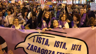 Varias mujeres protestan con una pancarta durante una manifestación convocada por la Comisión 8M y la Coordinadora de Organizaciones Feministas de Zaragoza, por el 8M, Día Internacional de la Mujer. - Fabián Simón - Europa Press