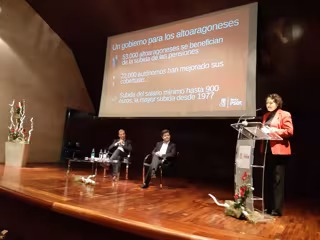 La ministra de Trabajo, Magdalena Valerio, ha destacado el "gran trabajo" de la capital altoaragonesa y de la Diputación Provincial de Huesca ante el reto demográfico. Así lo ha indicado este sábado en un acto en la ciudad oscense, donde también ha hablado de la recuperación de derechos perdidos por los ciudadanos y la puesta en marcha de nuevas medidas sociales por parte del Gobierno central.