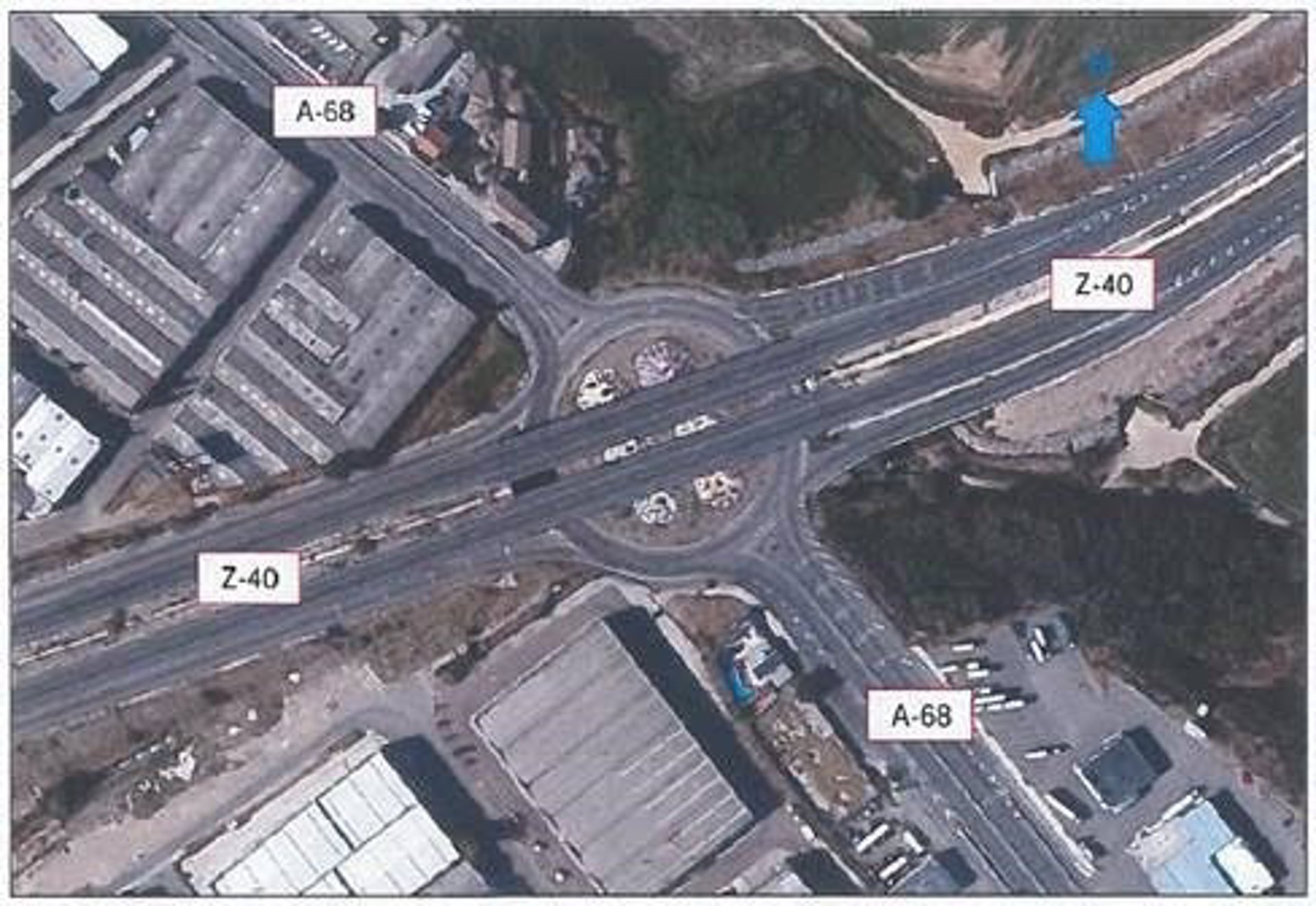 El paso inferior se proyecta con dos carriles por calzada --sentido Zaragoza y sentido Castellón-- y se disponen dos vías laterales paralelas a las calzadas de la A-68, también de dos carriles, que permiten canalizar los movimientos entre la A-68 y la Z-40 a través de la glorieta y el acceso a las instalaciones industriales y de servicios existentes en ambas márgenes de la A-68.