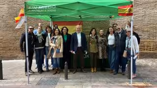 El cabeza de lista de VOX a las Cortes de Aragón por Zaragoza, Santiago Morón, ha participado este domingo en la carpa informativa que VOX ha instalado en la zona de tapeo del centro de la ciudad, en el corazón del casco histórico, donde ha reivindicado el derecho a permanecer, que ningún aragonés tenga que abandona su tierra por falta de servicios y oportunidades.