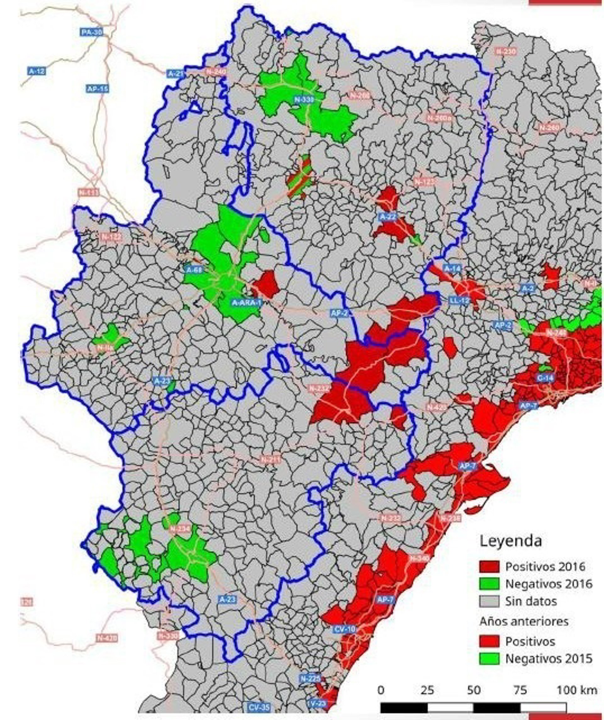 En concreto, se ha encontrado mosquito tigre en los municipios turolenses de Calaceite y Alcañiz; en los de Barbastro, Monzón y Fraga, en la provincia de Huesca, y en La Joyosa, Alfajarín, Mequinenza y Caspe, en la provincia zaragozana, ha informado el Gobierno de Aragón en una nota de prensa.