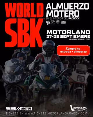 Las entradas de WorldSBK pueden comprarse ya en la web de MotorLand Aragón con la promoción del almuerzo. Actualmente, la entrada de WorldSBK es de 40 euros --más gastos de gestión-- la cual se situaría en 45 euros en el caso de tener almuerzo sábado o domingo a elección del comprador o aumentaría a 50 euros en el caso de coger la opción de los dos días.
