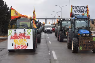 Tractores se dirigen a Zaragoza por la carretera N-330 durante la cuarta jornada de protestas de los ganaderos y agricultores, a 9 de febrero de 2024, en Zaragoza - Ramón Comet - Europa Press