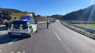 El siniestro se ha producido a las 13.40 horas en el kilómetro 25,500 de la A-1102, cuando por causas que ya estudia el Equipo de Investigación de Seguridad Vial, han colisionado frontalmente un turismo y una motocicleta.