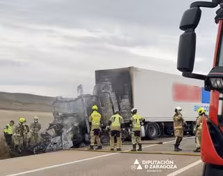 Por su parte, desde la Diputación de Zaragoza han comunicado que la cabina de uno de los camiones se ha incendiado e, igual que el coche, han quedado totalmente destruido.