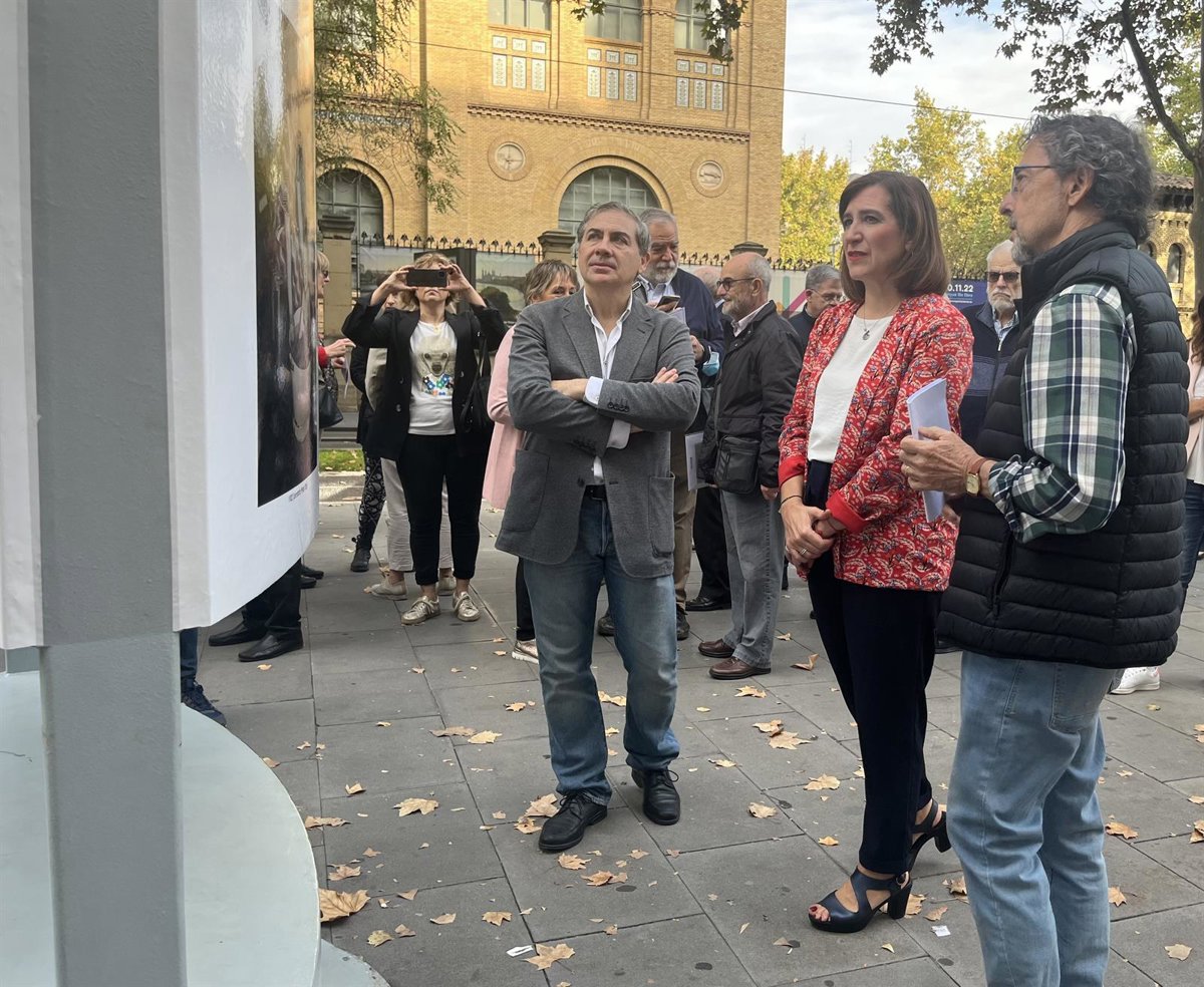 La vicealcaldesa y consejera municipal de Cultura y Proyección Exterior del Ayuntamiento de Zaragoza, Sara Fernández, y el presidente de la Real Sociedad Fotográfica de Zaragoza, José Ignacio García, han presentado este viernes la muestra, que permanecerá en la vía pública hasta el próximo 30 de noviembre.