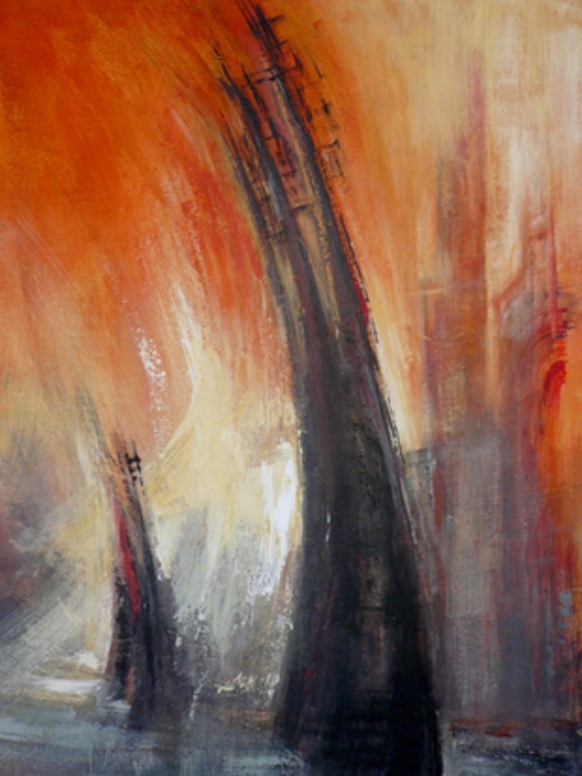 Meyes Oliván, tras su paso por la sala zaragozana, ofrece en Huesca su obra 'Arquitecturas cambiantes', con obras en las que ojos miran desde debajo de un puente, desde dentro de un porche, desde la entraña de la ciudad.