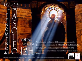 El Museo Diocesano de Huesca ha organizado la observación en directo del fenómeno del asoleo en la capilla de San Joaquín de la Catedral oscense, en las fechas previas al equinoccio de primavera, cuando el sol ilumina la imagen de la Virgen de la Inmaculada desde una ventana de esta capilla del templo.