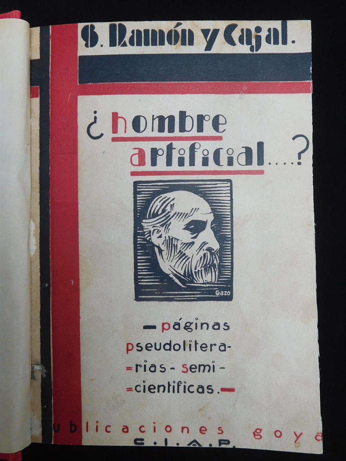 Se trata de 'Composición fantástica', una pintura sobre cartón de Ramón Acín; y 'Páginas pseudoliterarias semicientíficas ¿Hombre artificial?', un libro cuyo autor es Santiago Ramón y Cajal, publicado en el año 1931, que incluyó la particularidad de ilustrarse con un grabado de Ramón Acín.