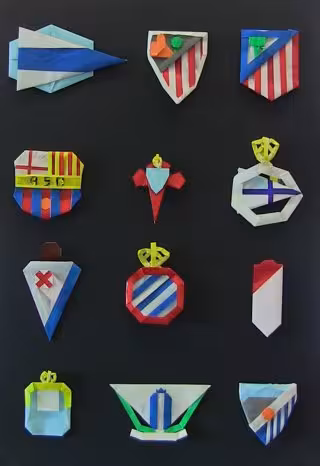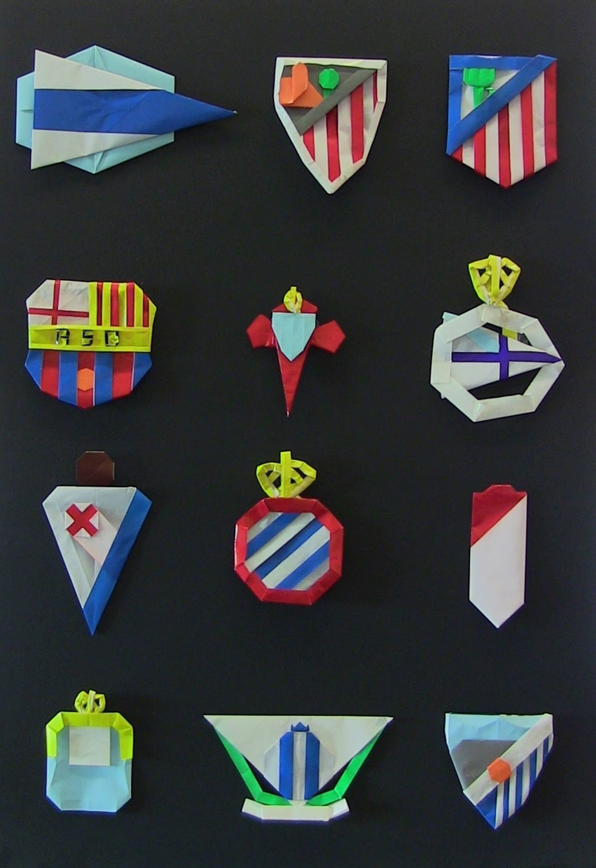La Escuela Museo de Origami de Zaragoza (EMOZ) exhibe en papiroflexia los escudos de equipos de fútbol que participan en la primera y segunda división de la Liga de Fútbol Profesional de España.